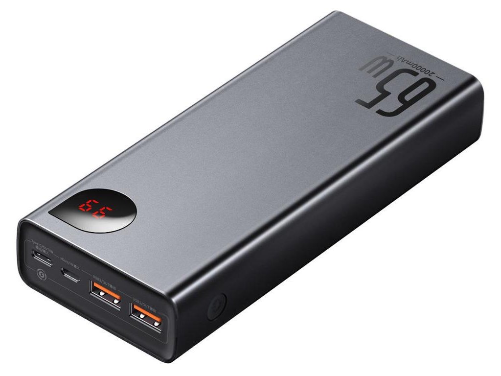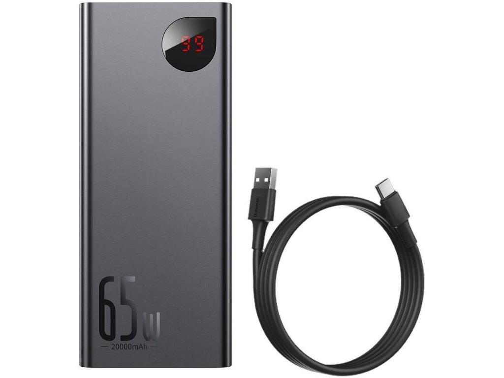 Powerbanka Baseus Adaman Digital Display PPIMDA-D01 20000mAh 65W PD QC 4.0 2x USB-A 1x USB-C s napájecím kabelem - Klíčové vlastnosti: