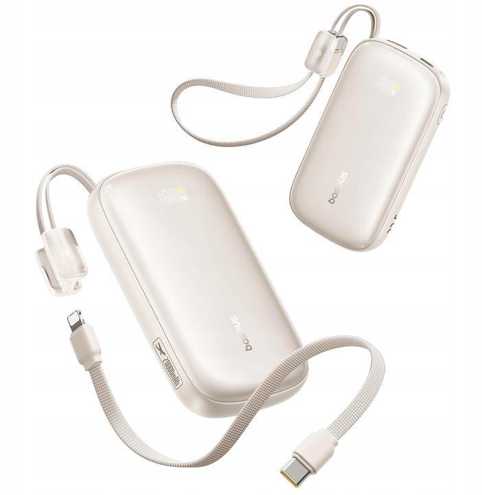 Powerbanka Baseus EnerFill FC21 20000 mAh 22,5 W USB-A USB-C béžová s odpojitelným kabelem Lightning