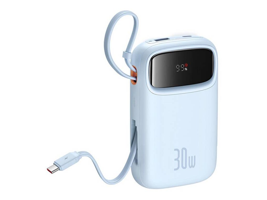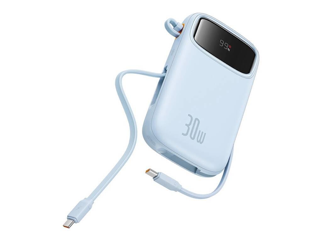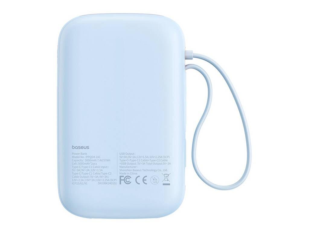 Powerbanka Baseus QPow 2 10000mAh 30W s 2 vestavěnými kabely USB-C - modrá
