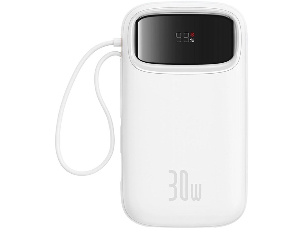 Powerbanka Baseus QPow 2 20000mAh 30W s 2 vestavěnými kabely USB-C - bílá