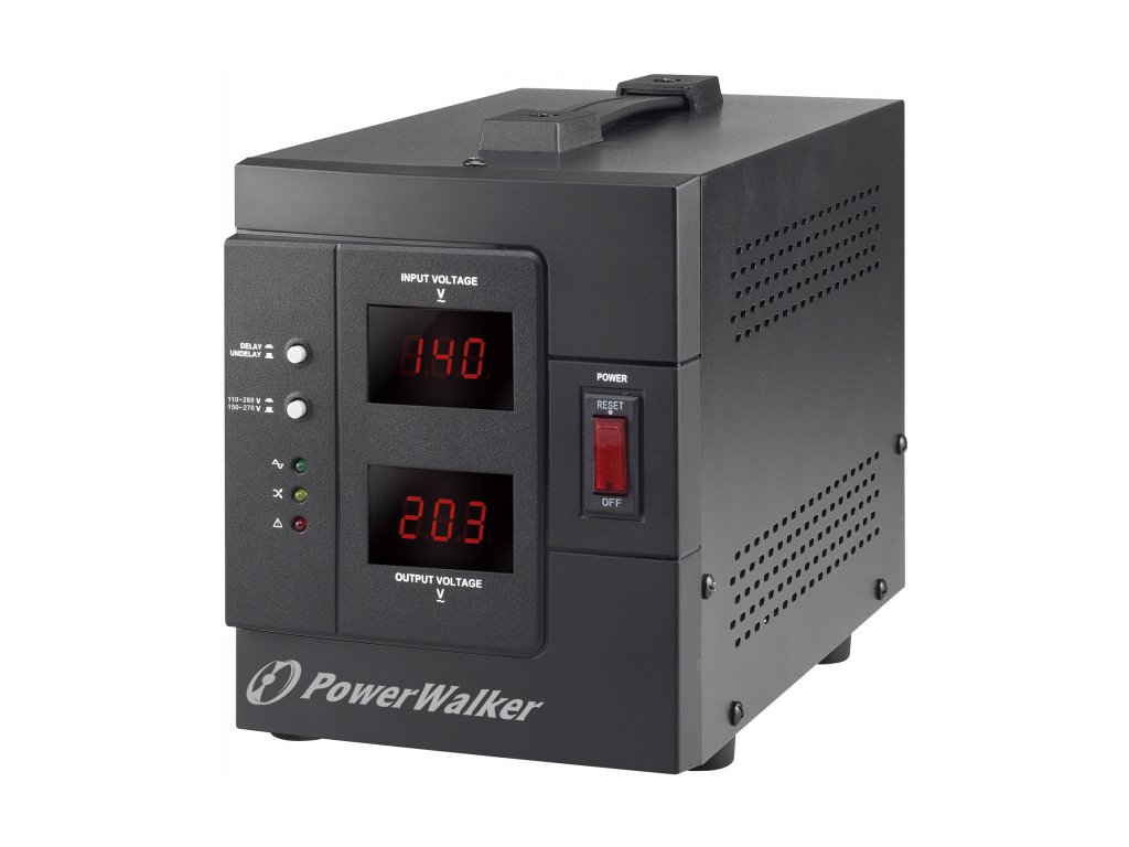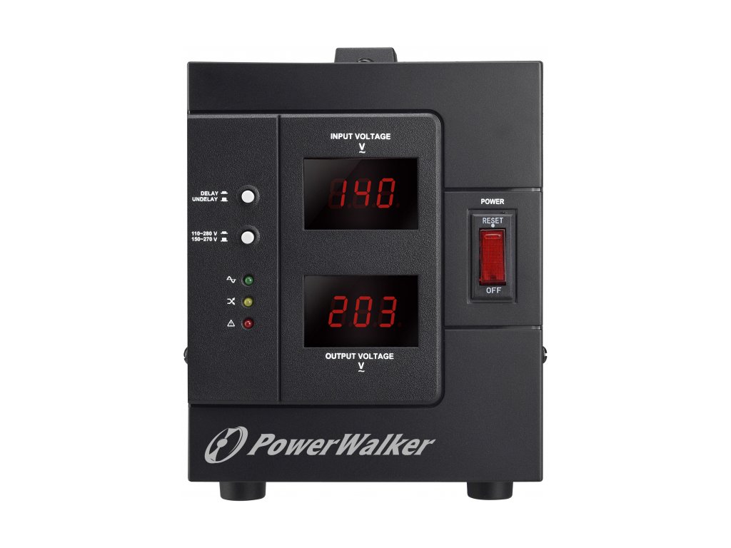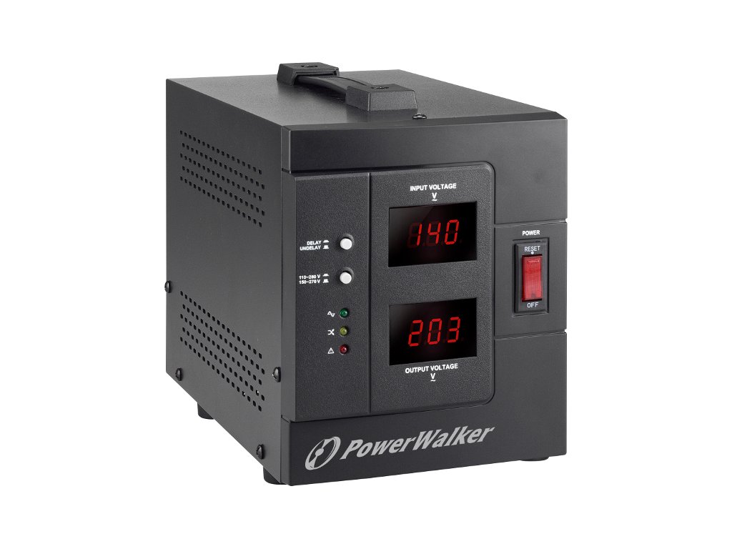 PowerWalker AVR 2000SIV/FR je automatický regulátor napětí s polskými výstupními zásuvkami. AVR má dva rozsahy přijatelného napětí: široký (110-280 V) a úzký (150-280 V). Poskytuje stabilní výstupní napětí díky použitému stabilizátoru napětí, který zvyšuje nebo snižuje napětí na očekávané. Vestavěný teplotní senzor zajišťuje ochranu proti přehřátí. Kromě toho lze aktivovat funkci ochranného zpoždění, která prodlouží dobu odemknutí z 10 ms na 3 minuty.