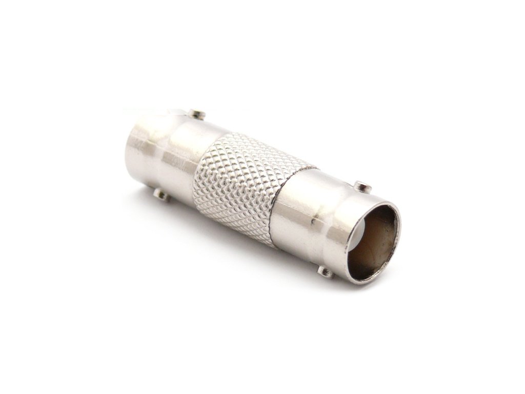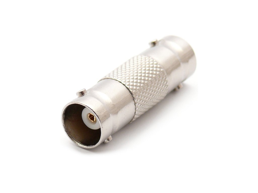 Přechod z BNC zásuvky na BNC zásuvku, tzv. soudek, vyrobený z kovu, umožňuje připojení koaxiálních kabelů zakončených BNC konektory!
