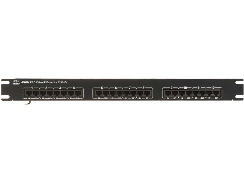 Zařízení chrání všechny páry vodičů ve čtyřpárovém kabelu a odvádí elektrický náboj do země. Kovové pouzdro zaručuje větší odolnost proti všem druhům mechanického poškození a poskytuje stínění pro celý ochranný systém. AXON-PRO-IP-12POE+ je určen k instalaci do 19" racku jako modul 1U. Použití stíněné zásuvky RJ-45 umožňuje zachovat kontinuitu stínění při použití kroucené dvojlinky STP. Předpokladem správné funkce modulu AXON-PRO-IP-12POE+ je jeho připojení k pracovnímu uzemnění nebo ochrannému vodiči PE.