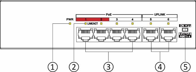 | Porty | 4 porty PoE 10/100 Mb/s, 2 porty RJ45 10/100 Mb/s |