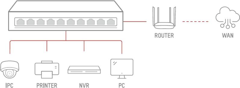 | Porty | 8 × port PoE 10/100 Mb/s, 2 × port RJ45 10/100 Mb/s |