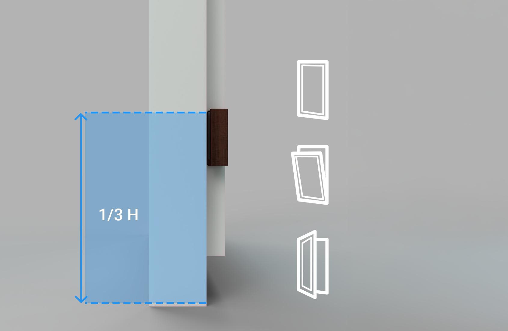 3stavový režim lze použít pouze pro Windowskdyž jsou snímač a příslušenství namontované ve spodní části rámukterý umožňuje přesně rozlišit stupeň sklonu okenního křídla (otevřené/sklopené).