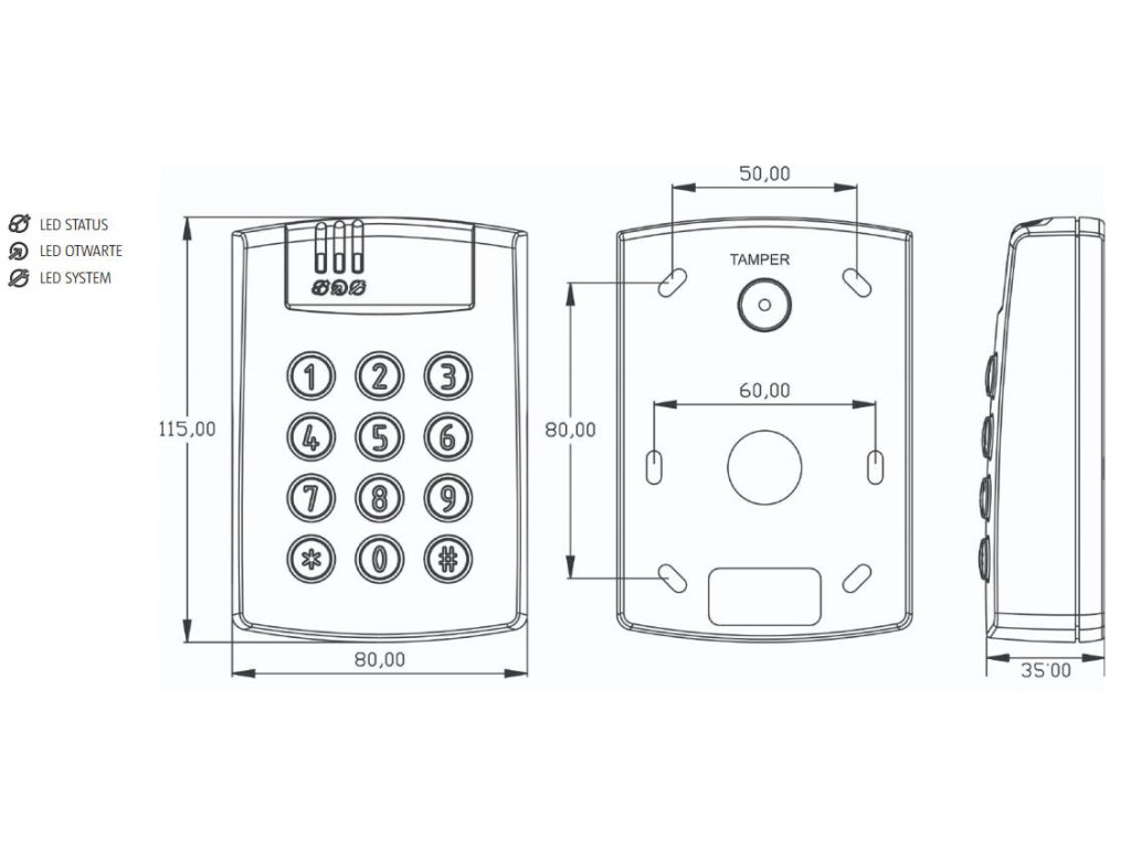 - Vestavěná bezkontaktní čtečka EM 125 kHz