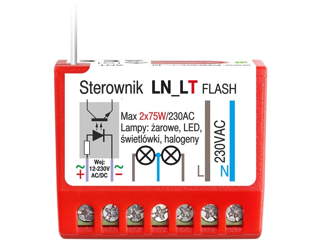 LN_LT FLASH je síťový rádiový ovladač , který se připojuje k výstražnému světlu pohonu brány a zapíná osvětlení příjezdové cesty. Funguje s rádiovými dálkovými ovladači Proxima 433,92 MHz ve formátu plovoucího kódu a s dálkovými ovladači HCS 433,92 MHz (analýza pevné části kódu dálkového ovladače). Má galvanicky oddělený vstup, který reaguje na napětí 12–230 V AC/DC DC nebo DC (buzení může být přerušované). LN_LT FLASH má paměť pro 819 dálkových ovladačů.