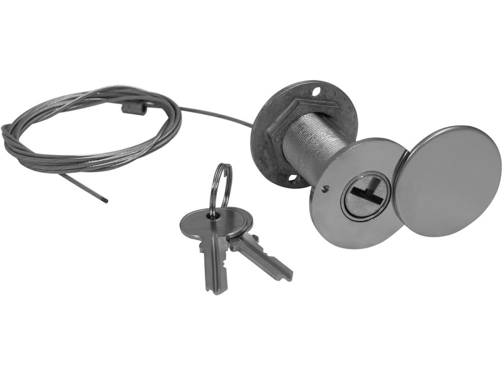 Nouzové uvolnění závory brány slouží k uvolnění garážových vrat (odpojuje pohon od vnějšího prostoru). Kovové pouzdro je namontováno v panelu vrat. Po odemknutí klíčem vytáhněte celou vložku, ke které je připojen kabel.