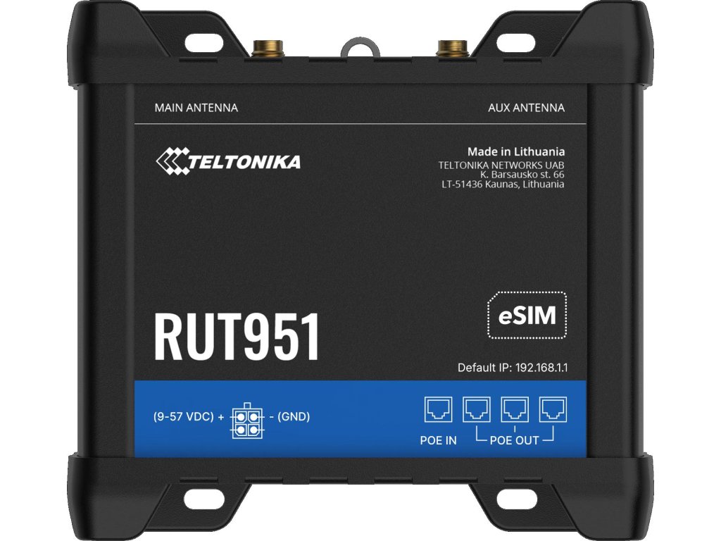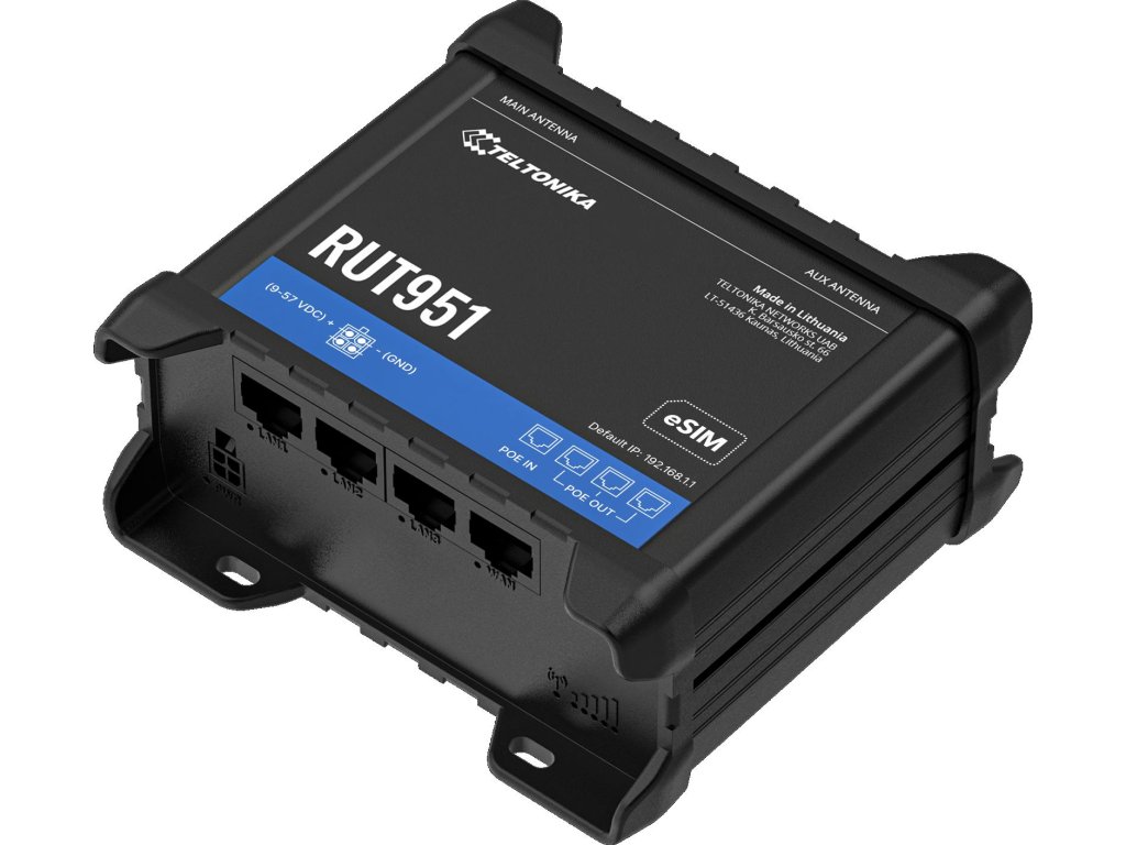 Teltonika RUT951 je řešení vytvořené pro ty, kteří oceňují spolehlivost a funkčnost v jednom. Díky pokročilým možnostem správy a podpoře nejnovějších síťových technologií bude dobře fungovat v jakémkoli průmyslovém prostředí. Zvolte spolehlivost a stabilitu, zvolte RUT951.