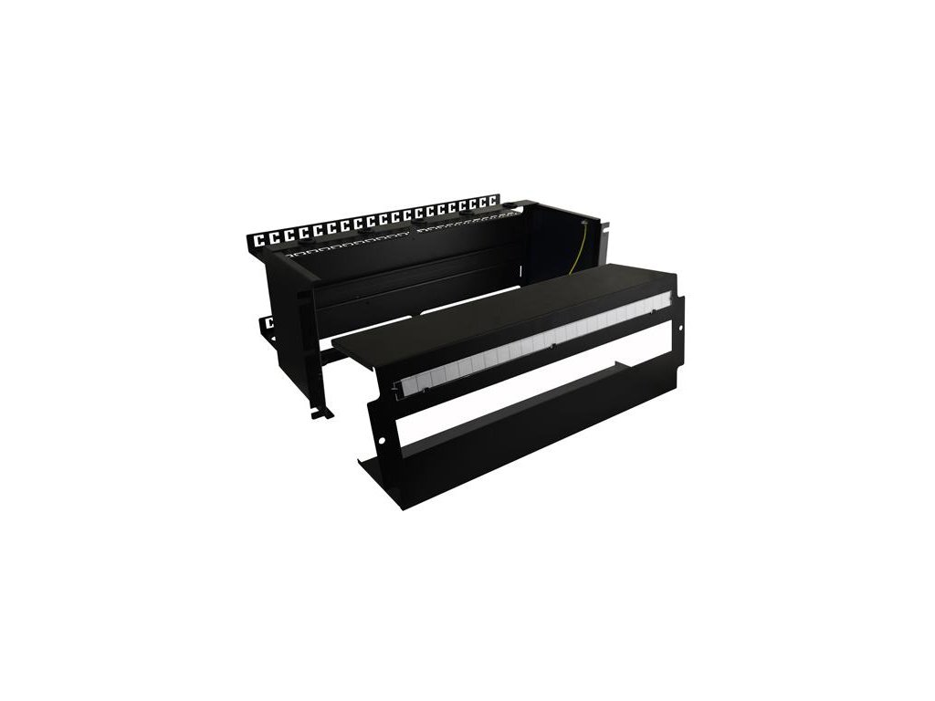 RACK 19". Skříň má lištu DIN 24x1S. Výška namontovaného modulu nesmí přesáhnout 160 mm.