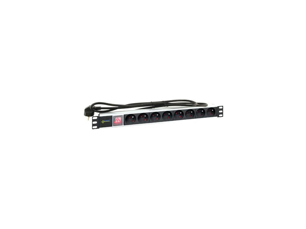 - Napájecí lišta pro montáž do rackových profilů, pro připojení 8 zařízení napájených 230 VAC