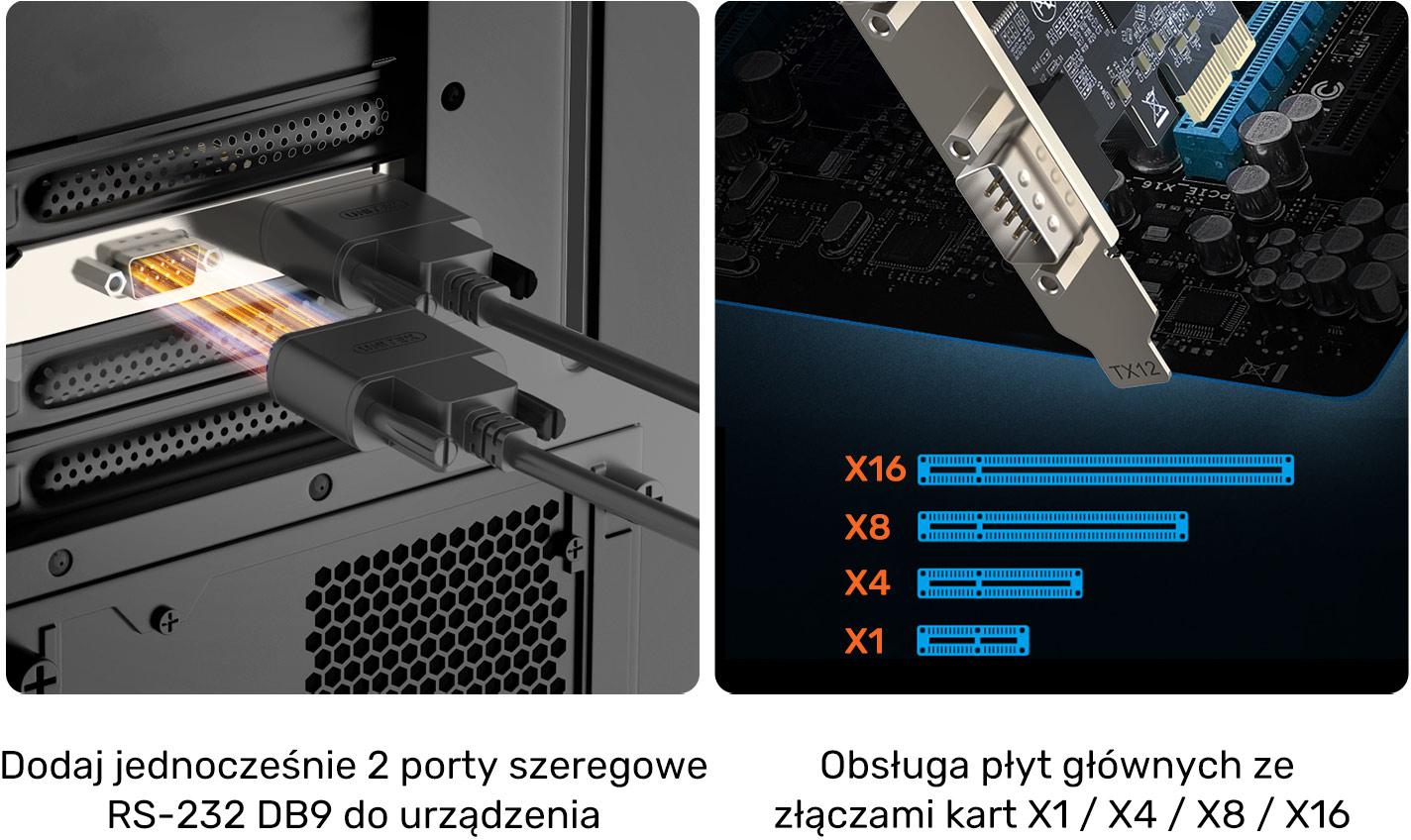 UNITEK Y-7504B - Karta PCIe se 2 porty RS-232 DB9