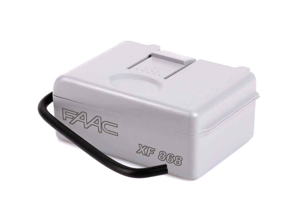 Modul rádiového přijímače FAAC XF868 je určen pro operátory FAAC s 3kolíkovým komunikačním konektorem. Tento konektor se používá pro všechny pohony D600, D700, D1000 a všechny nové ovládací panely, jako jsou E045, E145, E024, E124. Přijímač se nehodí do 5pinových konektorů starší elektroniky.