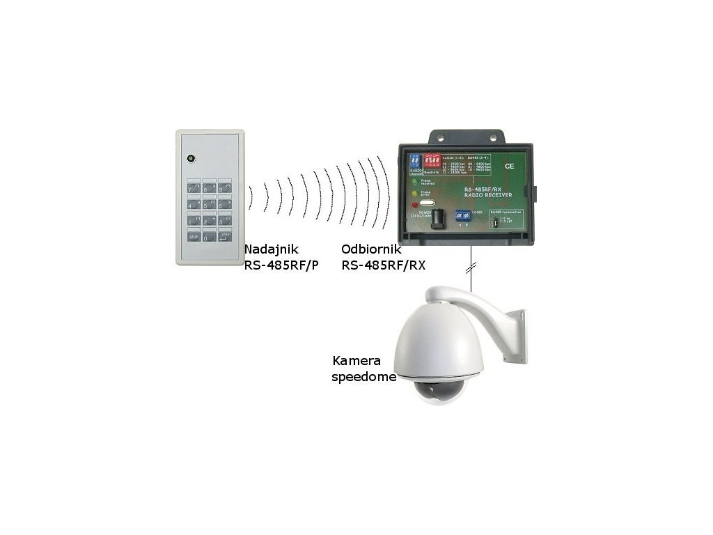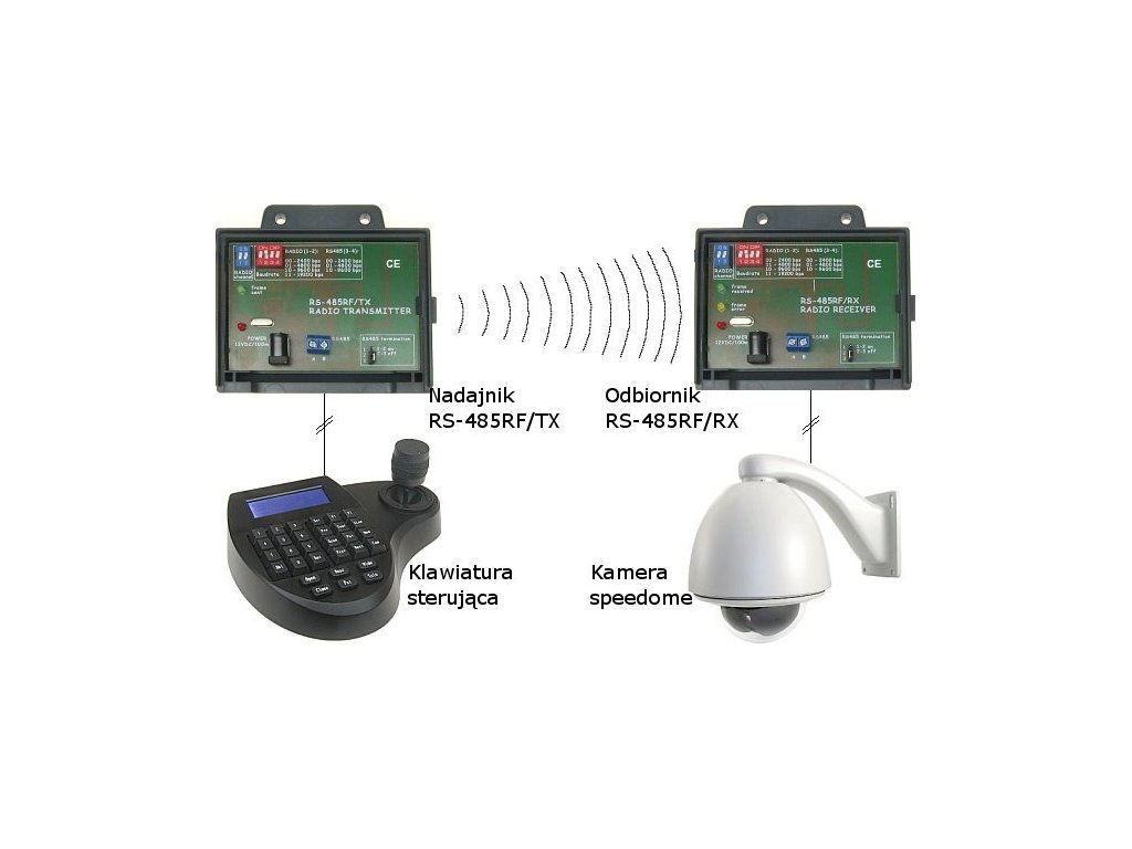 Zařízení umožňuje přijímat data prostřednictvím rádiového vysílání a dále je odesílat prostřednictvím dvouvodičového média RS-485. Ve spolupráci s dálkovým ovladačem RS-485RF/P umožňuje ovládat PAN/TILT/ZOOM/FOCUS kamer PTZ, zatímco s vysílačem RS-485RF/TX umožňuje přenášet libovolná data RS-485 rychlostí 2400, 4800, 9600b/s. Toto spojení je zcela transparentní, nezáleží na tom, jaká data a v jakém systému jsou přenášena.