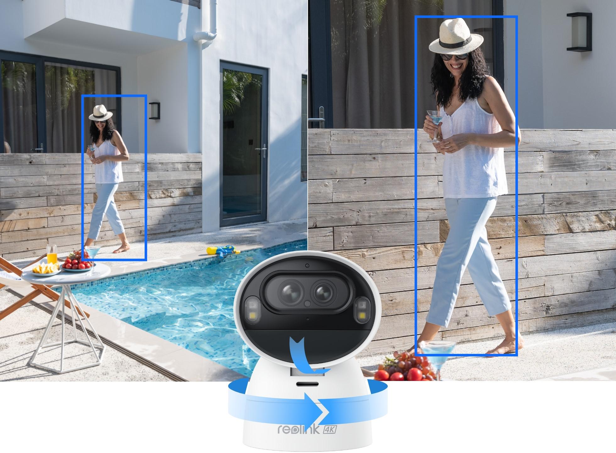 Kamera Reolink B730 je vybavena dvěma objektivy, které spolupracují a zajišťují ještě efektivnější sledování. Hlavní objektiv je zodpovědný za široký živý náhled, zatímco druhý objektiv využívá hybridní zoom - automaticky přibližuje detekovaný objekt, jako je osoba, zvíře nebo vozidlo.