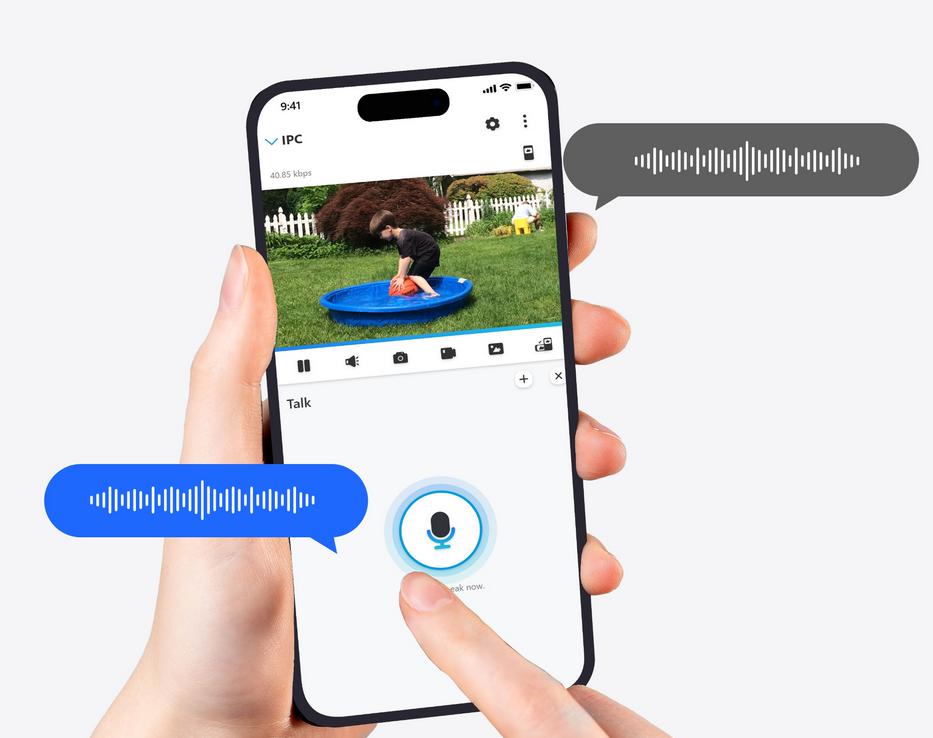 Vestavěný mikrofon a reproduktor vám umožní mluvit v reálném čase - ať jste kdekoli. Je to pohodlné řešení pro kontaktování členů domácnosti nebo například kurýra.