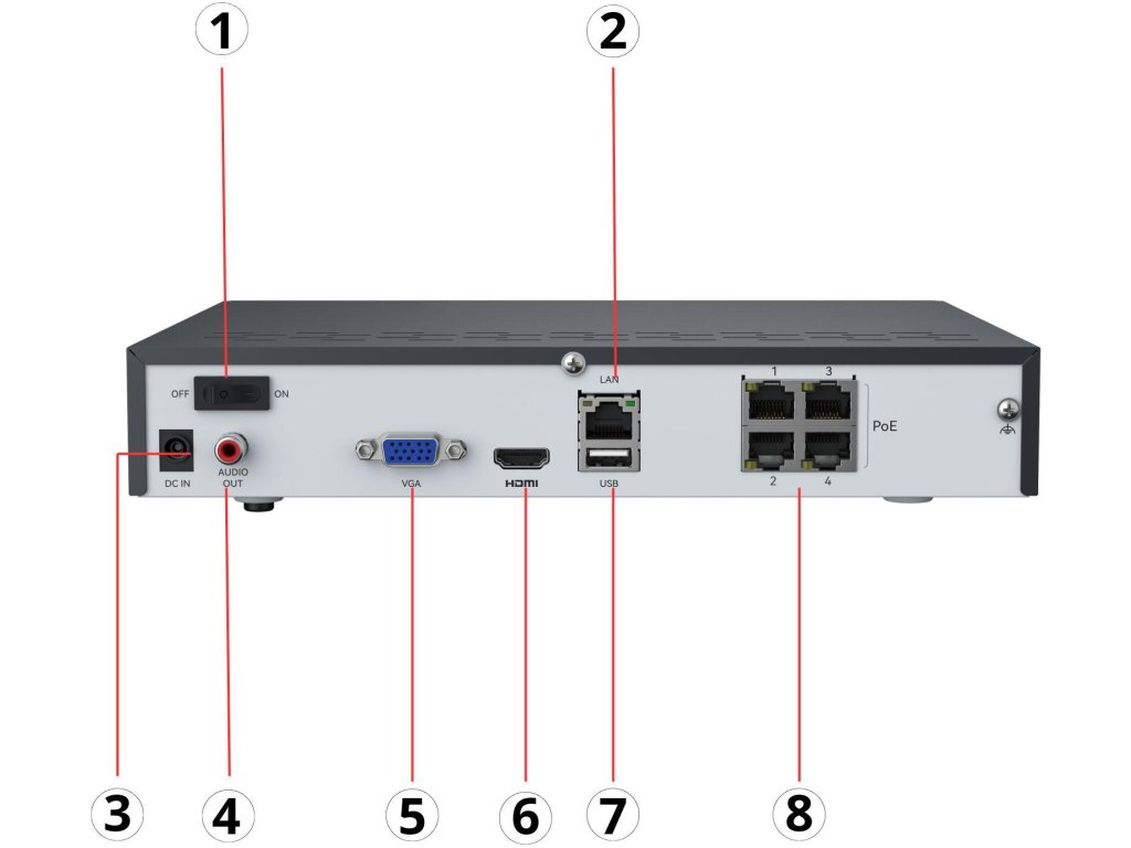 DVR umožňuje připojení a ovládání až čtyř IP kamer a centralizovanou správu veškerého sledování. Jedná se o praktické a efektivní řešení, které poskytuje snadné ovládání a bezpečné ukládání záznamů v jednom zařízení.