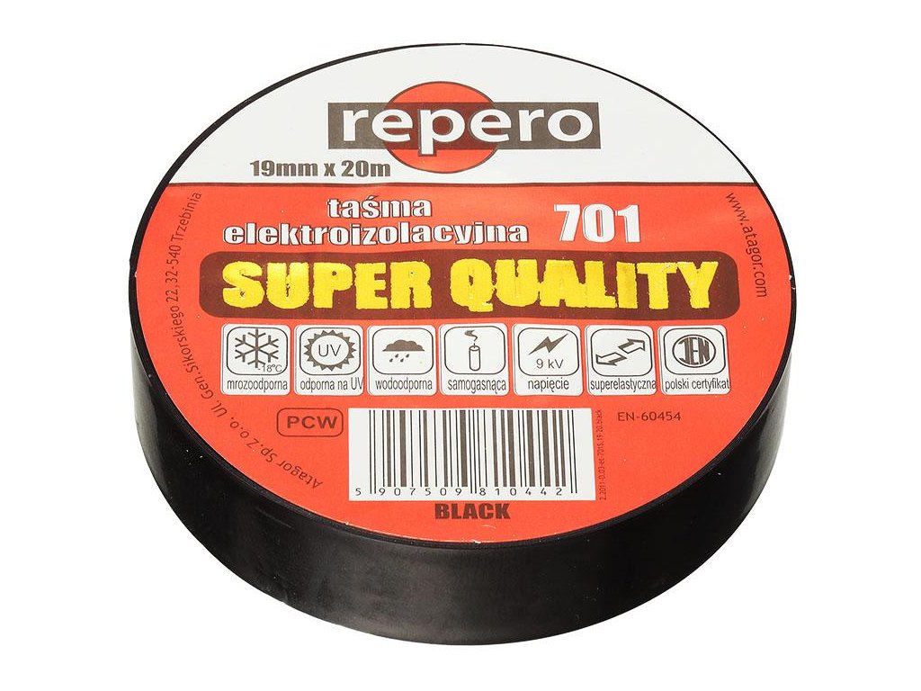 Repero 701 je vysoce kvalitní elektroizolační PVC páska, která byla navržena pro profesionální izolaci a svazkování elektrických kabelů. Je ideální pro použití v náročných podmínkách, zejména tam, kde jsou vodiče vystaveny slunečnímu záření, nízkým teplotám a vyžadují dodatečnou mechanickou ochranu.