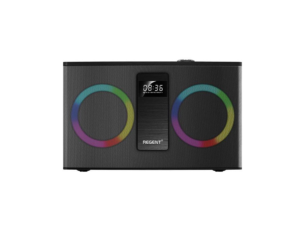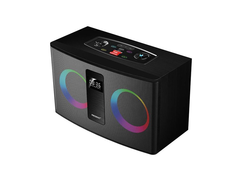 Regent Power Audio 300BT RGB FM je výkonný reproduktor, ke kterému můžete připojit telefon nebo jiný zdroj zvuku (přes Bluetooth nebo vstup AUX) a naplnit svůj prostor hudbou. Kompaktní konstrukce chráněná dřevem vám umožní zvýšit hlasitost bez obav z praskání nebo vibrací typických pro levné reproduktory. Robustní a těžké tělo si skvěle poradí s mohutnými basy, které můžete zapnout stisknutím tlačítka aktivací funkce Ultra Bass System. Nebojte se, reproduktor nezačne "chodit" po povrchu - perfektně zvládne cokoli, co mu přikážete, a zároveň naplní místnost kvalitním zvukem.