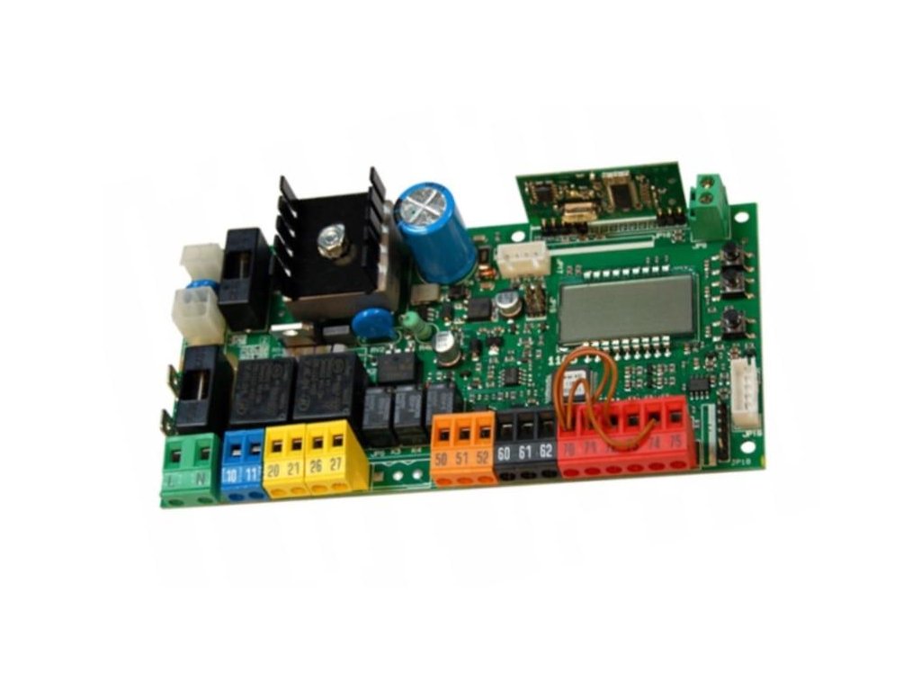Řídicí jednotka pro BFT Deimos ULTRA A600 (F1-0,8AT; F3-1,25AT). Tato řídicí jednotka umožňuje provozovat 1 motor napájený 24 V s výkonem až 300 W.