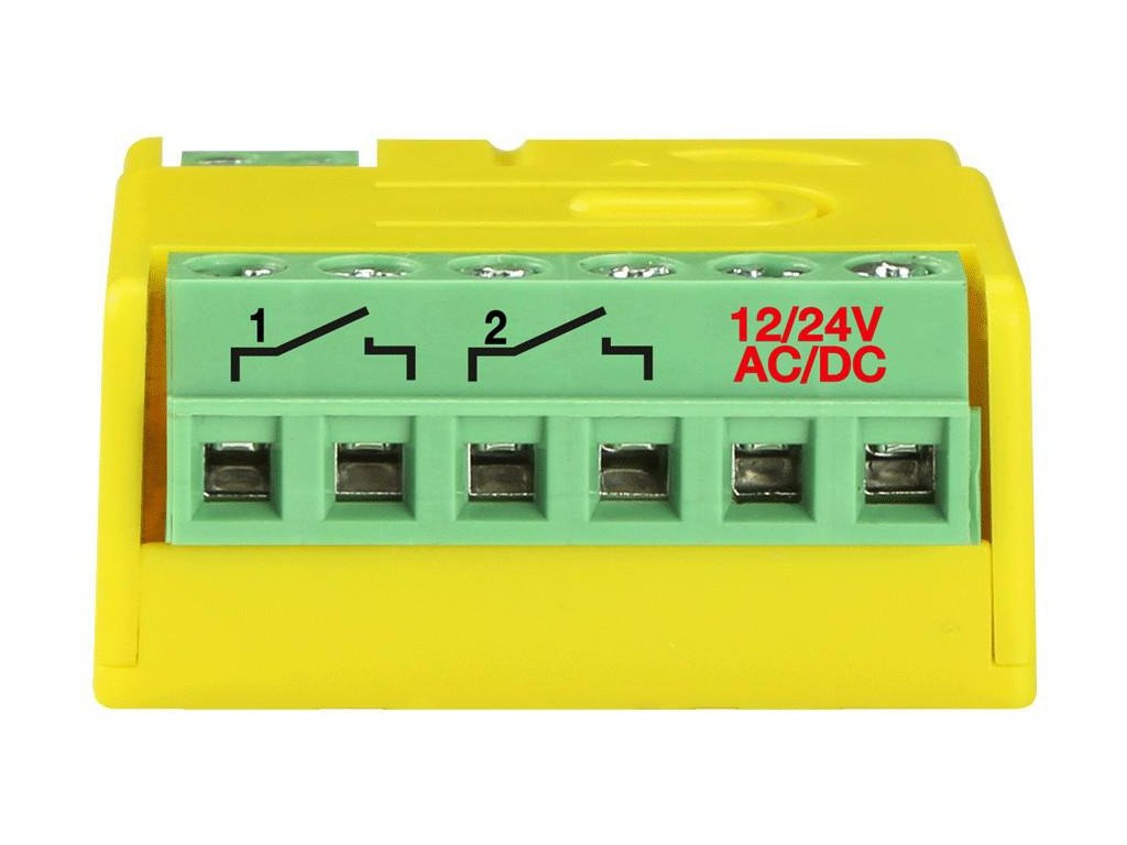 - Výstupy: 2 kanály / 24V-1A NO/NC relé