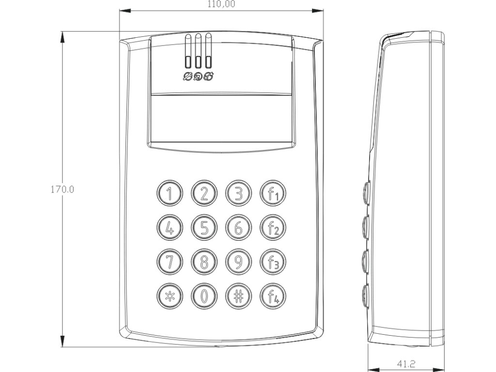 | Další funkce zařízení: | provoz jako terminál pro registraci času, čtečka má také čtecí frekvenci 13,56 MHz |