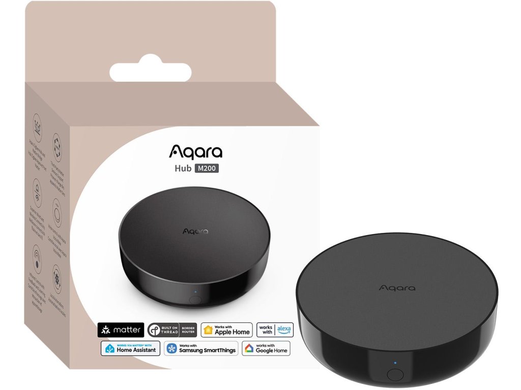 Aqara Hub M200 (HM-G03D) je pokročilý ovládací panel inteligentní domácnostikterý propojuje zařízení Matter a Zigbee. Funguje jako hmotná brána, které nabízí bezproblémovou a rozsáhlou integraci s Apple Home, Google Home, Alexou a SmartThings. Vestavěný 360° infračervený vysílač umožňuje ovládání tradičních spotřebičů, a místní automatizace zajišťuje rychlou odezvu, spolehlivost a úplné soukromí provozu vašeho systému.