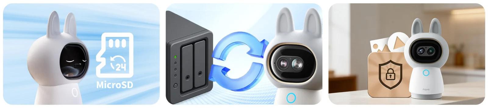 Produkt nabízí flexibilní možnosti nahrávání videa a dbá na soukromí uživatele. Záznamy lze ukládat lokálně na kartu microSD až 512 GBnahrané na server NAS nebo archivovány v šifrovaném cloudu. Podpora pro Zabezpečené video HomeKit umožňuje bezpečné používání cloudové analýzy obrázků Apple s úplným koncovým šifrováním. O tom, kam budou jeho data uložena, rozhoduje uživatel, což podporuje pocit úplné kontroly.