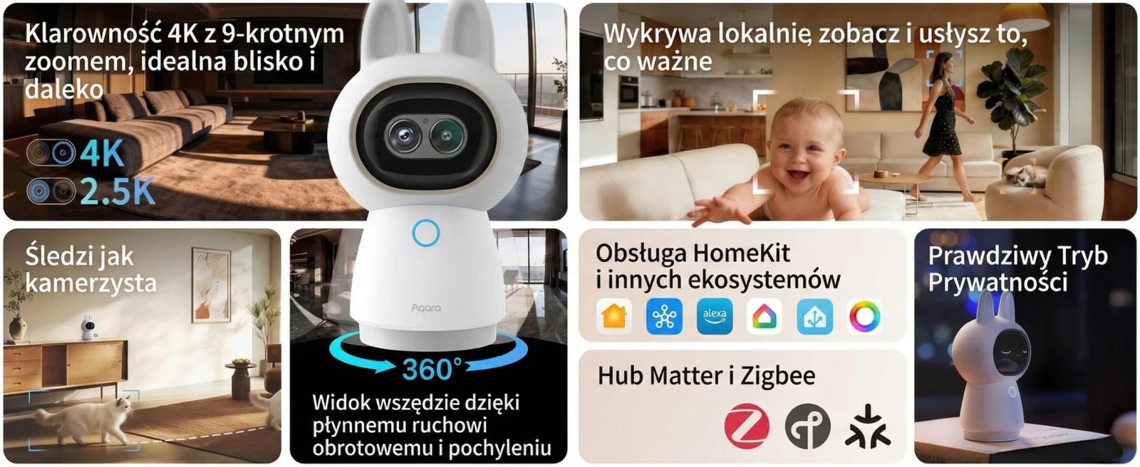 Rozbočovač kamery Aqara G350 je průlomové zařízení, které kombinuje funkci pokročilého fotoaparátu s hubem Matter 1.5. Umožňuje přímou integraci s Apple Home, Google Home a Alexou bez složité konfigurace. Díky systém dvou čoček a rozlišení 4K, výrobek nabízí mimořádně detailní obraz, který pomáhá při průběžné péči o bezpečnost majitelů domů a majetku.
