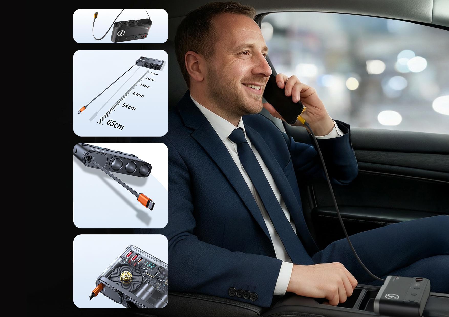 Rozdělovač R10 od společnosti Xblitz byl navržen s ohledem na uživatelský komfort. Zatahovací kabel USB-C o délce 65 cm zaručuje volnost při připojování zařízení bez zamotaných drátů nebo potřeby dalších kabelů. To usnadňuje organizaci prostoru v autě a umožňuje pohodlné používání rozbočovače jak pro řidiče, tak pro cestující