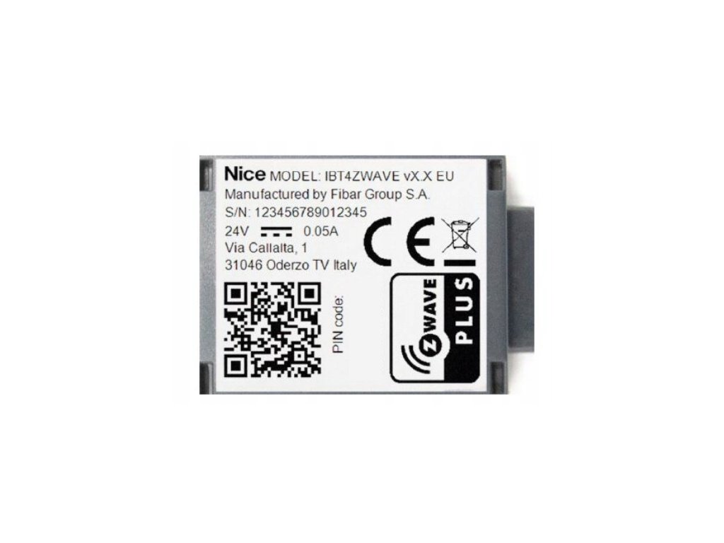Rozhraní NICE IBT4ZWAVE je určeno pro jednoduchou instalaci do operátorských panelů Nice. Umožňuje jejich jednoduchou integraci do systému FIBARO . Nabízí ovládání, hlášení stavu a odesílá diagnostické informace.