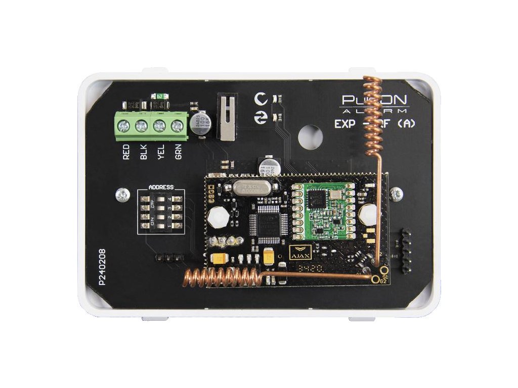 EXP-RF(A) je rozšiřující modul kompatibilní s hybridním systémem PulsON Alarm. Umožňuje přidat 80 bezdrátových zařízení značky Ajax.