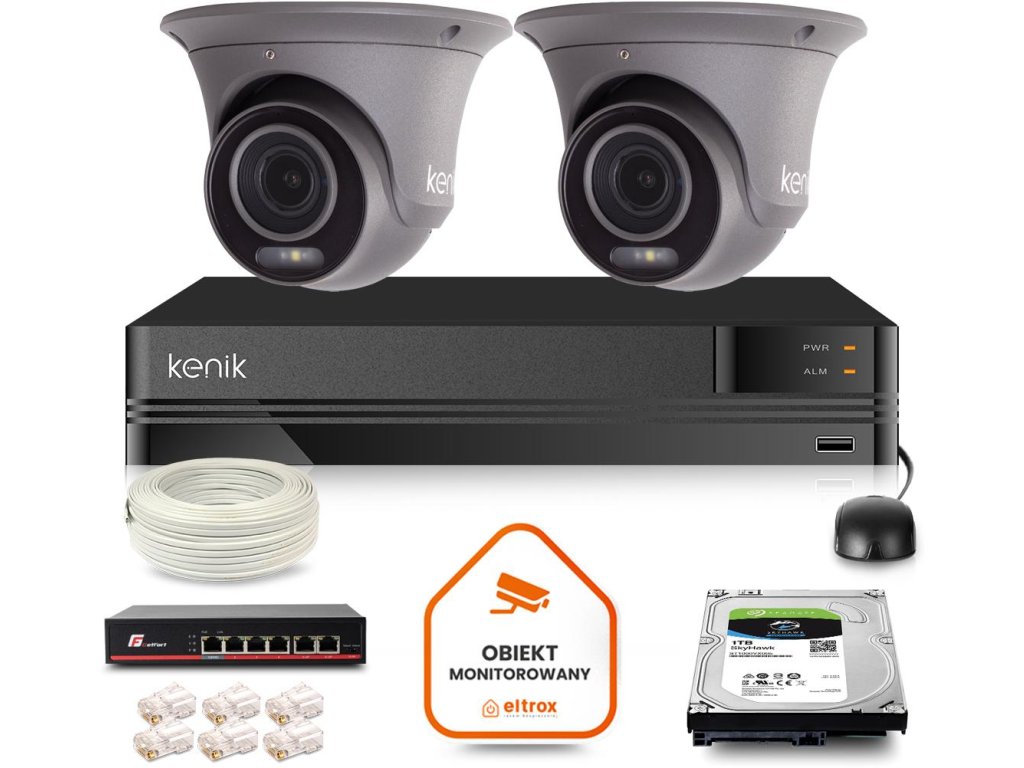 Sada 2 5MPx 60m 1TB dome kamer pro IP dohled Kenik