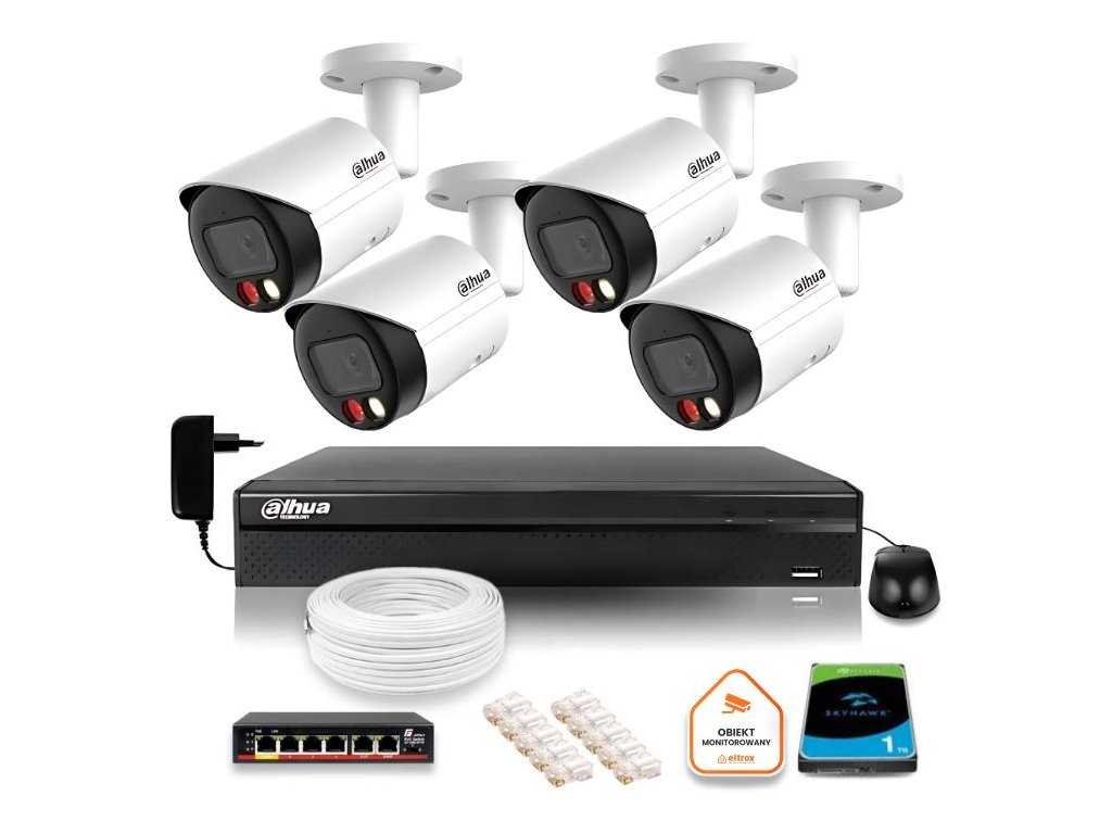 Sada 4 IP kamer Dahua s rozlišením FullHD a dvojitým barevným nočním osvětlením