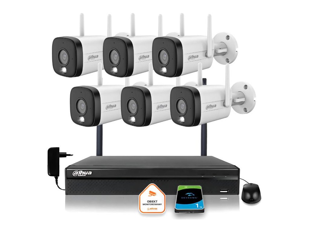 - Bezdrátový kamerový systém Dahua: 8kanálový DVR + 1TB pevný disk + 6 venkovních kamer s rozlišením 5 MPx s rohem
