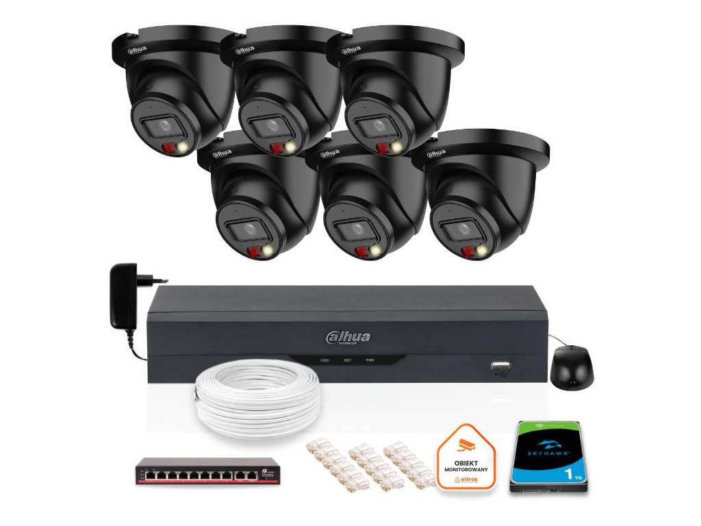 SADA 6 černých IP kamer Dahua 8mpx IPC-HDW2849TM-S-IL-BLACK + HDD 1TB