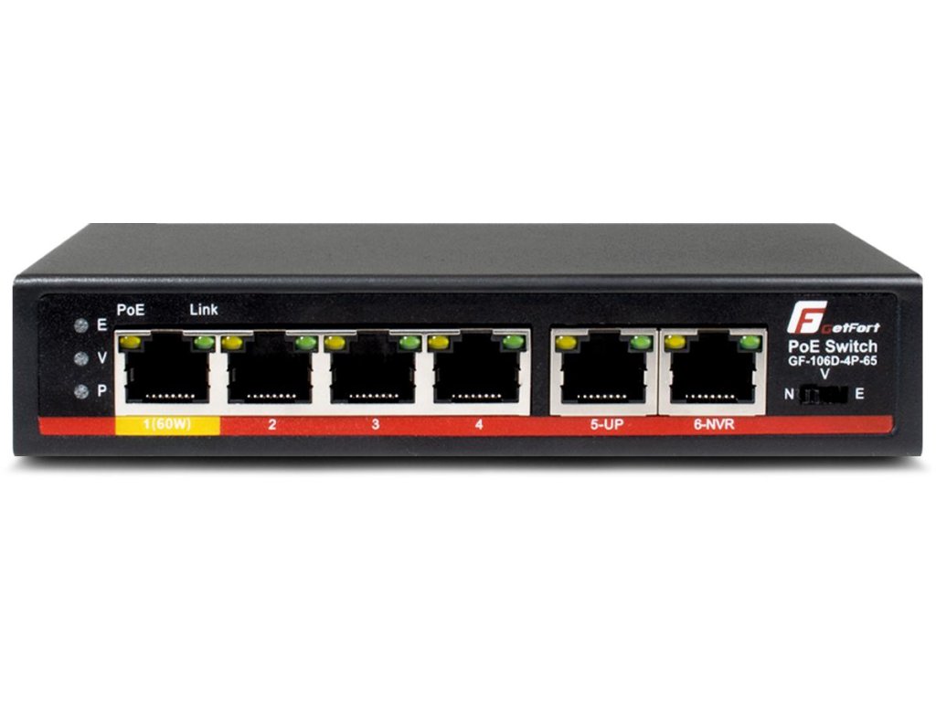 - 1 x GETFORT POE SWITCH 4FE x POE + 2FE UPLINK 65W 20045