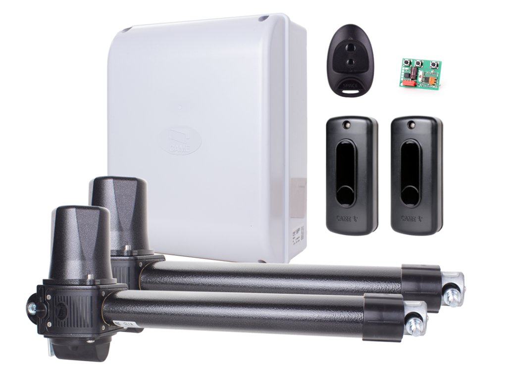 Kompletní sada CAME KRONO Plus SPACE s řídicí jednotkou ZF1N pro automatizaci dvoukřídlých bran s délkou křídla až 3 metry a hmotností křídla až 800 kg!* Sada s vestavěnými koncovými spínači - nejsou nutné nárazníky ani centrální doraz