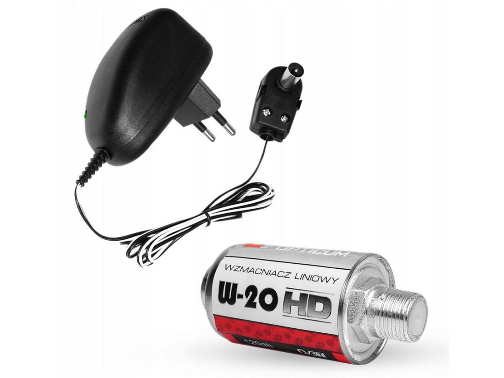- Lineární průchozí zesilovač W-20: zesilovač W-20 20 dB je určen pro domácí anténní instalace k zesílení pozemních analogových a digitálních televizních signálů v pásmu 5-862 MHz. Zařízení malých rozměrů lze namontovat přímo na anténní kabel nebo na hlavu tuneru. Zesilovač lze napájet přímo z tuneru s možností zapnutí 5V napájení nebo pomocí anténního napáječe 12V .