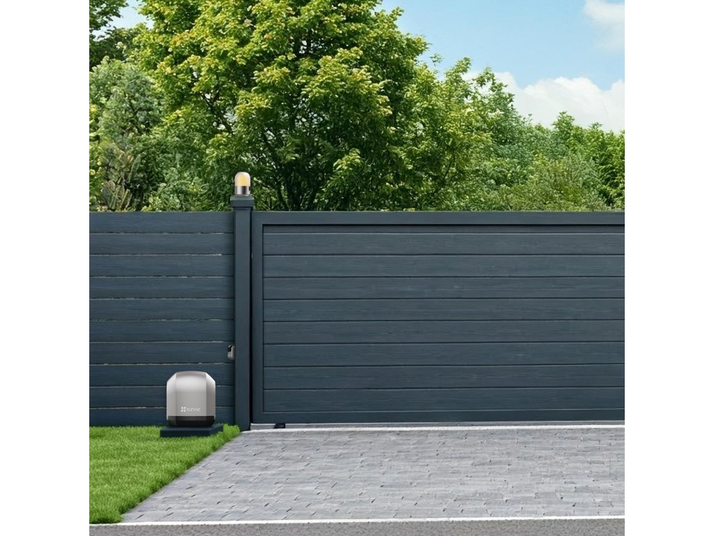 Mimořádně snadno instalovatelná sada posuvné brány, plně kompatibilní se značkovými zařízeními Ezviz dostupnými v naší síti. Díky modulu Wi-Fi zabudovanému v řídicí jednotce lze pohon ovládat jak ze specializované aplikace Ezviz, tak tradičně pomocí dálkových ovladačů. Opakovač Wi-Fi(bez příplatku - v ceně) zajistí, že domácí síť Wi-Fi bude dostatečně výkonná, aby dosáhla na bránu umístěnou mimo domácí směrovač.