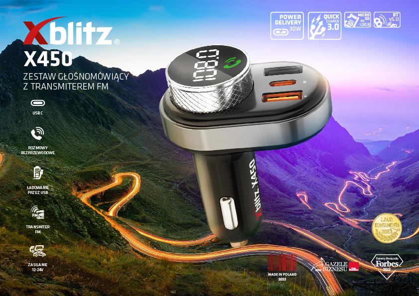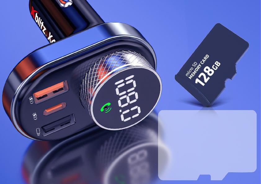Xblitz X450 je všestranné multimediální centrum, které umožňuje přehrávat oblíbené skladby dvěma pohodlnými způsoby. Díky stabilní technologii Bluetooth můžete bezdrátově streamovat hudbu ze svého chytrého telefonu do reproduktorů v autě. Případně je vysílač vybaven slotem pro kartu microSD s kapacitou až 128 GB, což vám umožní poslouchat hudbu uloženou přímo na kartě, což je ideální v oblastech se slabým pokrytím mobilní sítí.