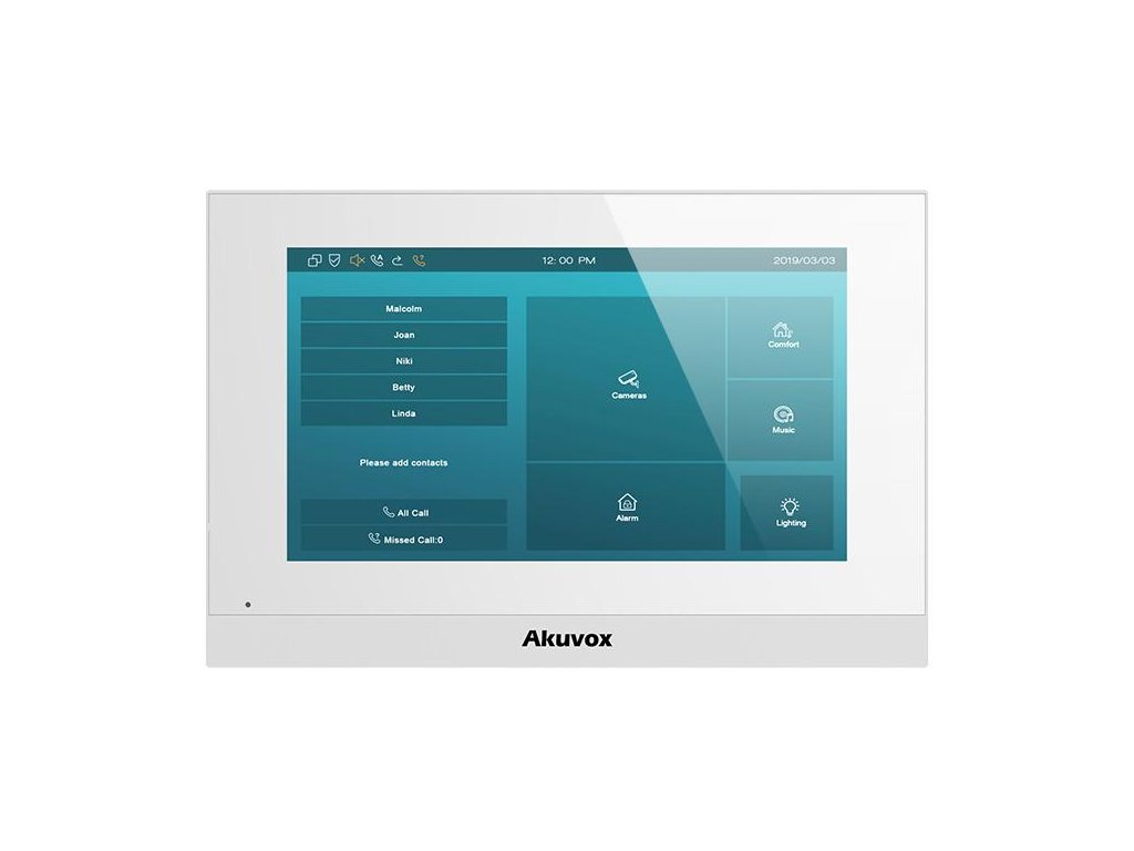 - 7palcový dotykový displej: monitorAkuvox C313Wmá adresuvelký 7palcový dotykový displej s režimem úspory energie.