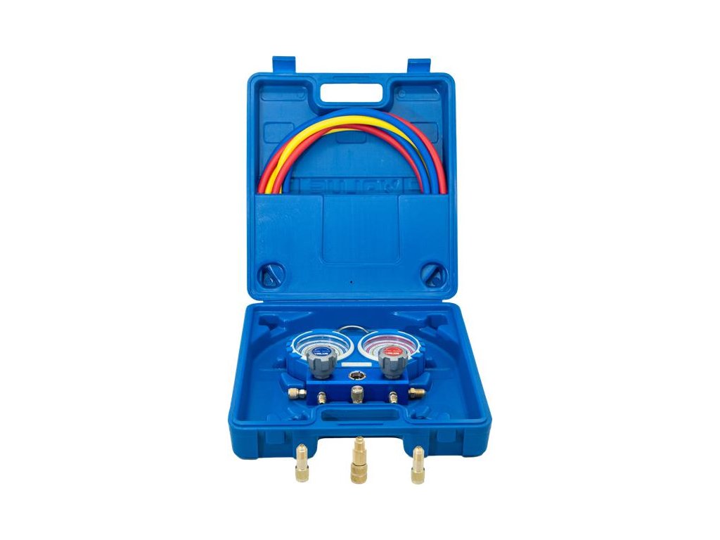 Sada manometrů určená pro chladicí a klimatizační systémy. Hlavní vlastnosti: