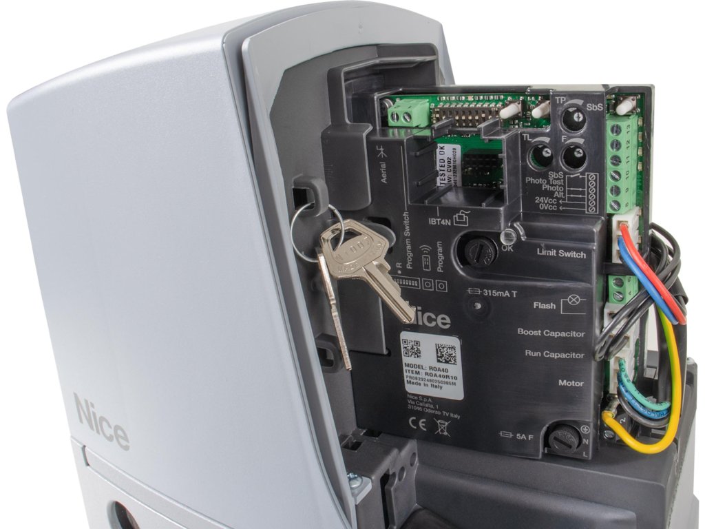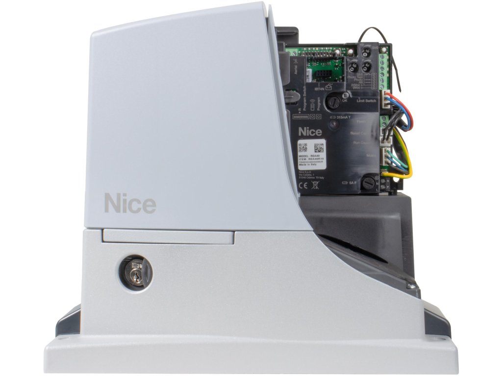 Kompletní sada NICE založená na pohonu Rox1000 určená k automatizaci posuvných bran do 1000 kg.