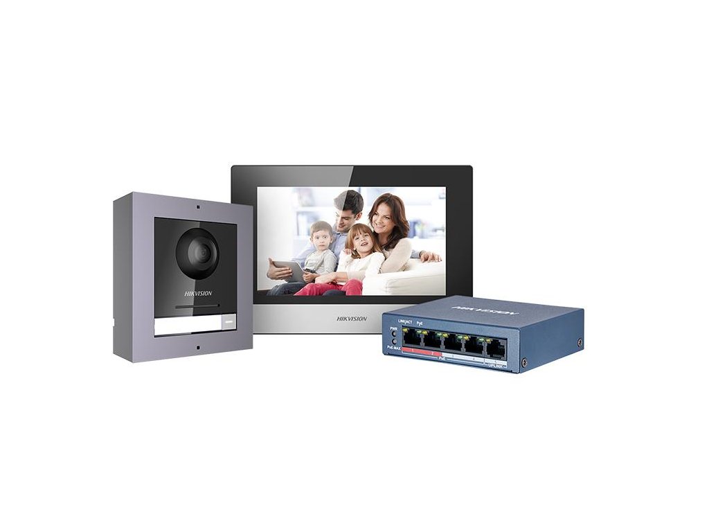Sada DS-KIS602 společnosti Hikvision je video interkom, který kombinuje funkce video interkomu a kontroly přístupu. Vyznačuje se vysokým výkonem použité kamery, kompresí videa H.264 a dodatečným režimem infračerveného osvětlení, který usnadňuje vizuální rozpoznávání v noci.