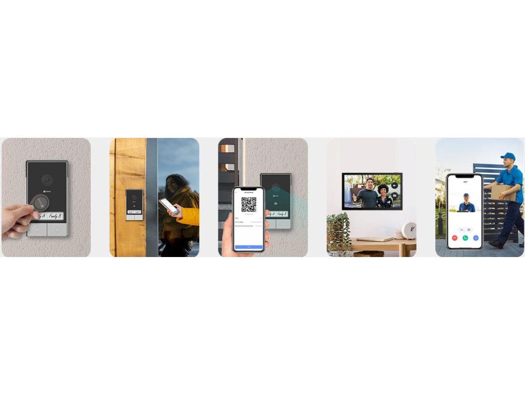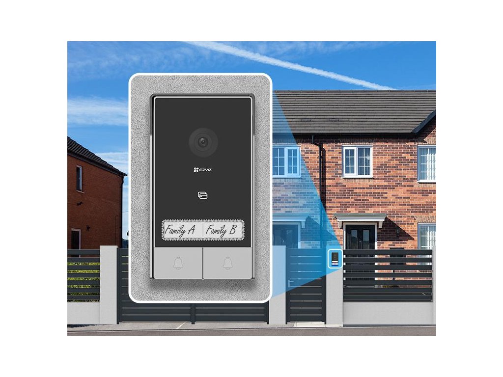 Majitelé domů se mohou těšit na vynikající kvalitu obrazu díky technologiirozlišení 2K iširoké zorné polea mohou snadno ovládat přístup ke dveřím nebo bráně jediným dotykem obrazovky nebo na dálku prostřednictvím aplikaceAplikace EZVIZ.