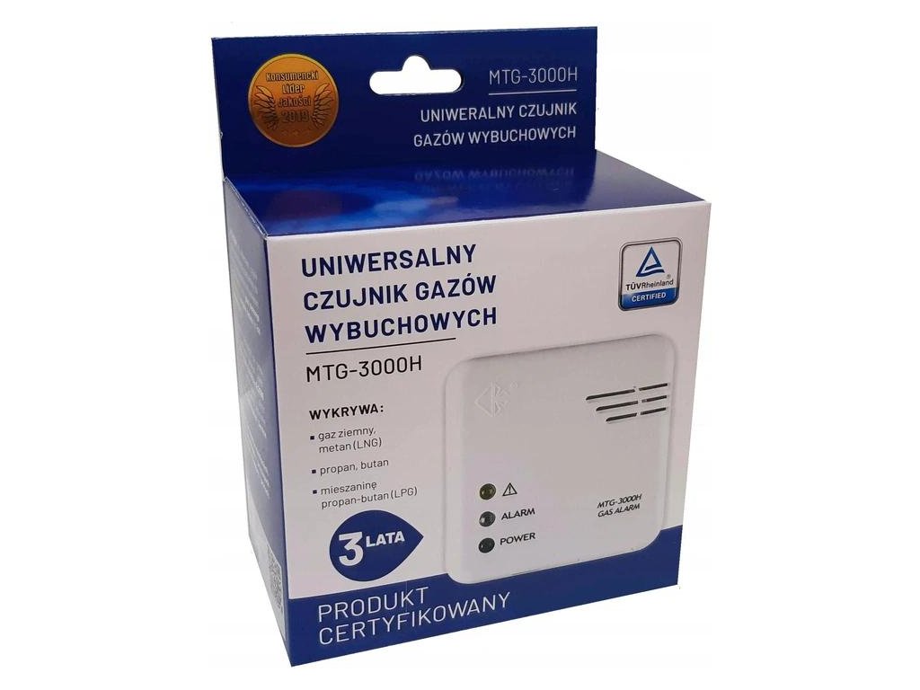Detektor metanu a butanu MTG 3000H je moderní detektor, který je určen k neustálé kontrole možné přítomnosti plynů v místnosti. Zařízení monitoruje prostředí na přítomnost látek, jako je zemní plyn (LGN, metan), propan, butan a jejich směsi. Detektor MTG-3000H v případě detekce úniku plynu aktivuje akustickou a vizuální signalizaci. Přístroj je vybaven speciálním autodiagnostickým systémem, který sleduje stav senzoru a vnitřních obvodů. V případě, že je v zařízení zjištěna porucha, rozsvítí se kontrolka LED, která signalizuje, že byla zjištěna porucha.