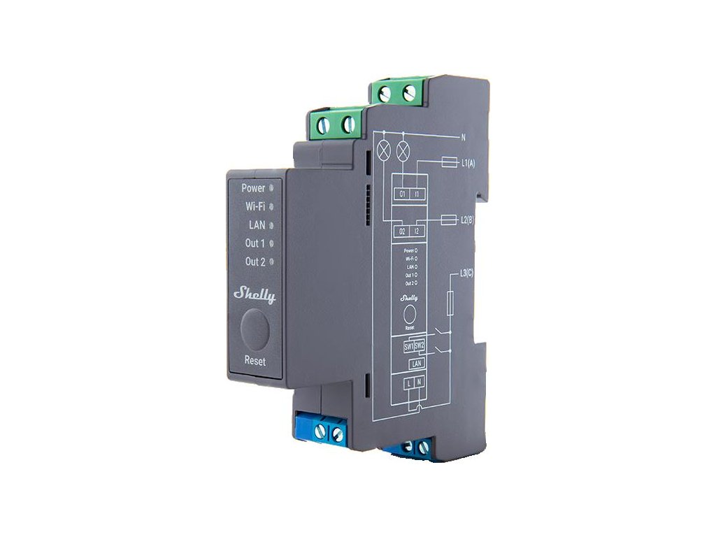 Shelly Pro 2 v.1 je pokročilý dvoukanálový modul na lištu DIN s bezpotenciálovými kontakty a plnou flexibilitou konfigurace - podporuje kabelovou síť LAN, Wi-Fi a Bluetooth. Ideální pro inteligentní řízení osvětlení, elektrických spotřebičů, topných zón v domácnostech, hotelech, kancelářích a průmyslových objektech.