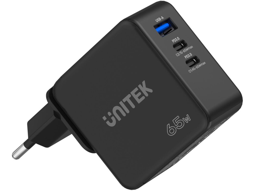 Síťová nabíječka Unitek GaN, PD 65W, cestovní, 3 porty